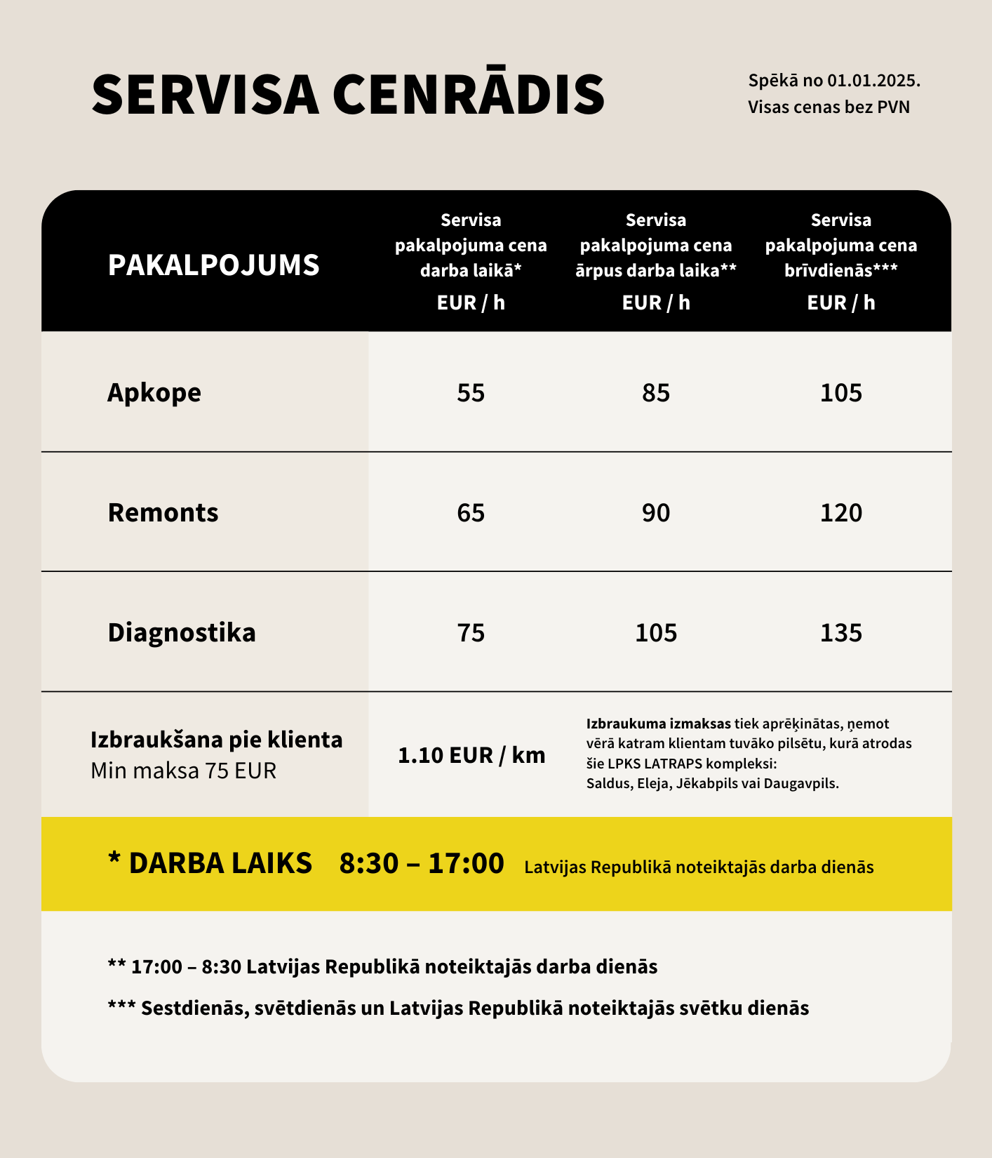 Mūsu mērķis nav tikai salabot tehniku – mēs veidojam ilgtermiņa sadarbību, lai jūsu saimniecība jums būtu efektīvāka, drošāka un ienesīgāka. Ieguldījums kvalitatīvā servisā ir ieguldījums jūsu ražas drošībā.