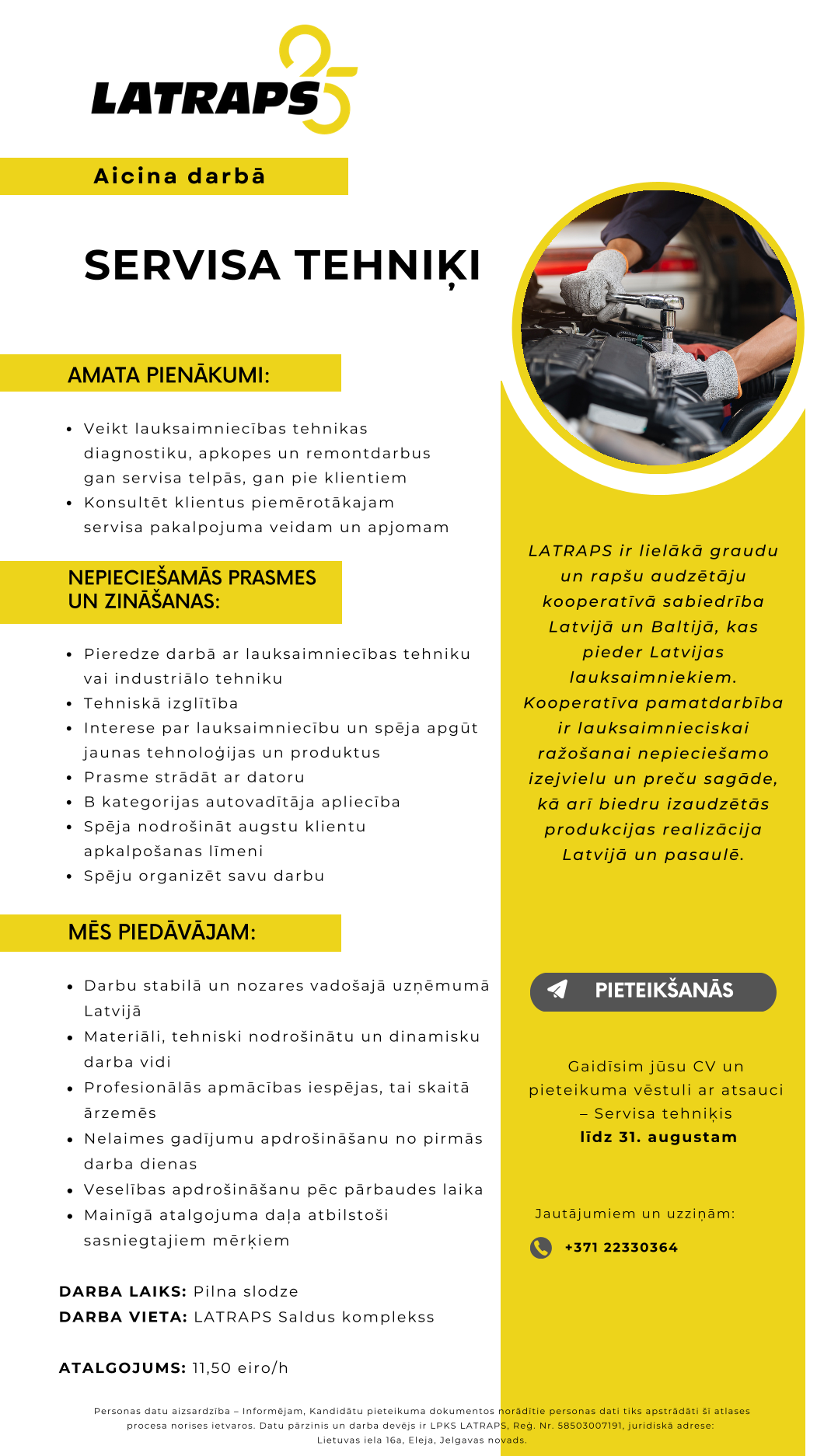 Neatradāt piemērotu vakanci, bet vēlaties pievienoties LATRAPS Tehnika komandai? Nosūtiet mums savu CV!